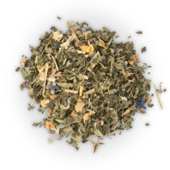 Sestavine iz ekološke pridelave: melisa, listi verbene, cvetovi limete, limonska trava, kamilica, poprova meta, listi žajblja, timijan, janež, cvetni listi vrtnice, koruznice, sončnice.