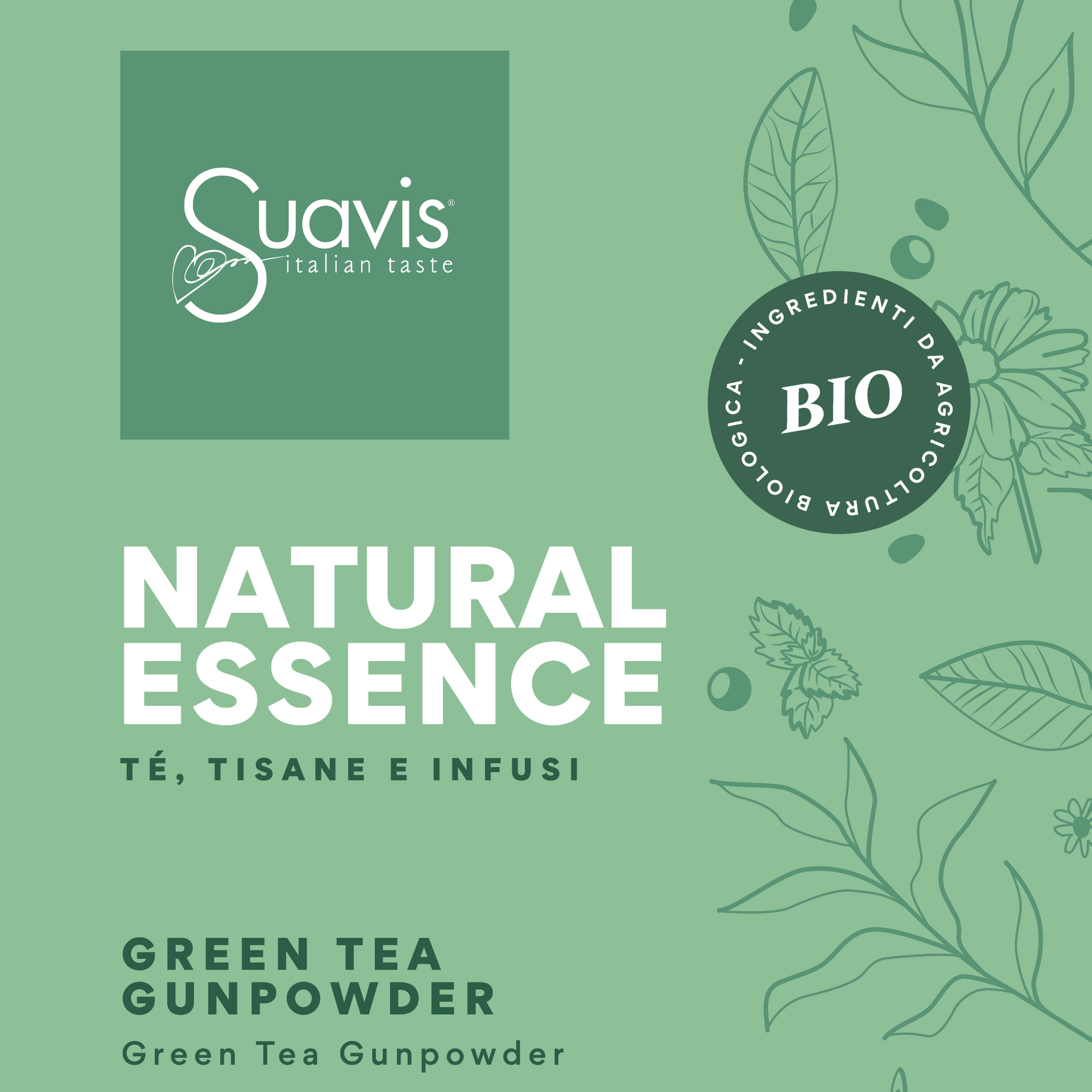 Sestavine iz ekološke pridelave: dolgolistni zeleni čaj Gunpowder.